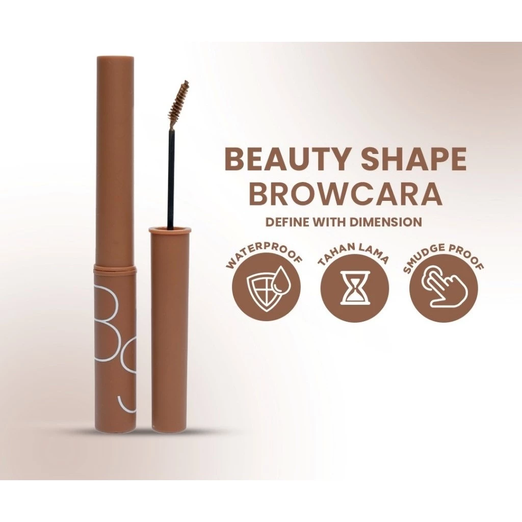Beauty Shape, Browcara adalah maskara alis yang mengandung fiber gel untuk memberikan hasil tampilan alis lebih berdimensi dengan warna naturalnya. Produk ini memiliki formula yang tahan lama, smudgeproof, dan waterproof. Mudah diatur untuk menghasilkan alis bervolume dan rapi.